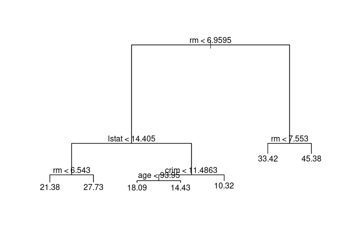 tree.boston <- tree(medv ~ ., Boston, subset=train)
